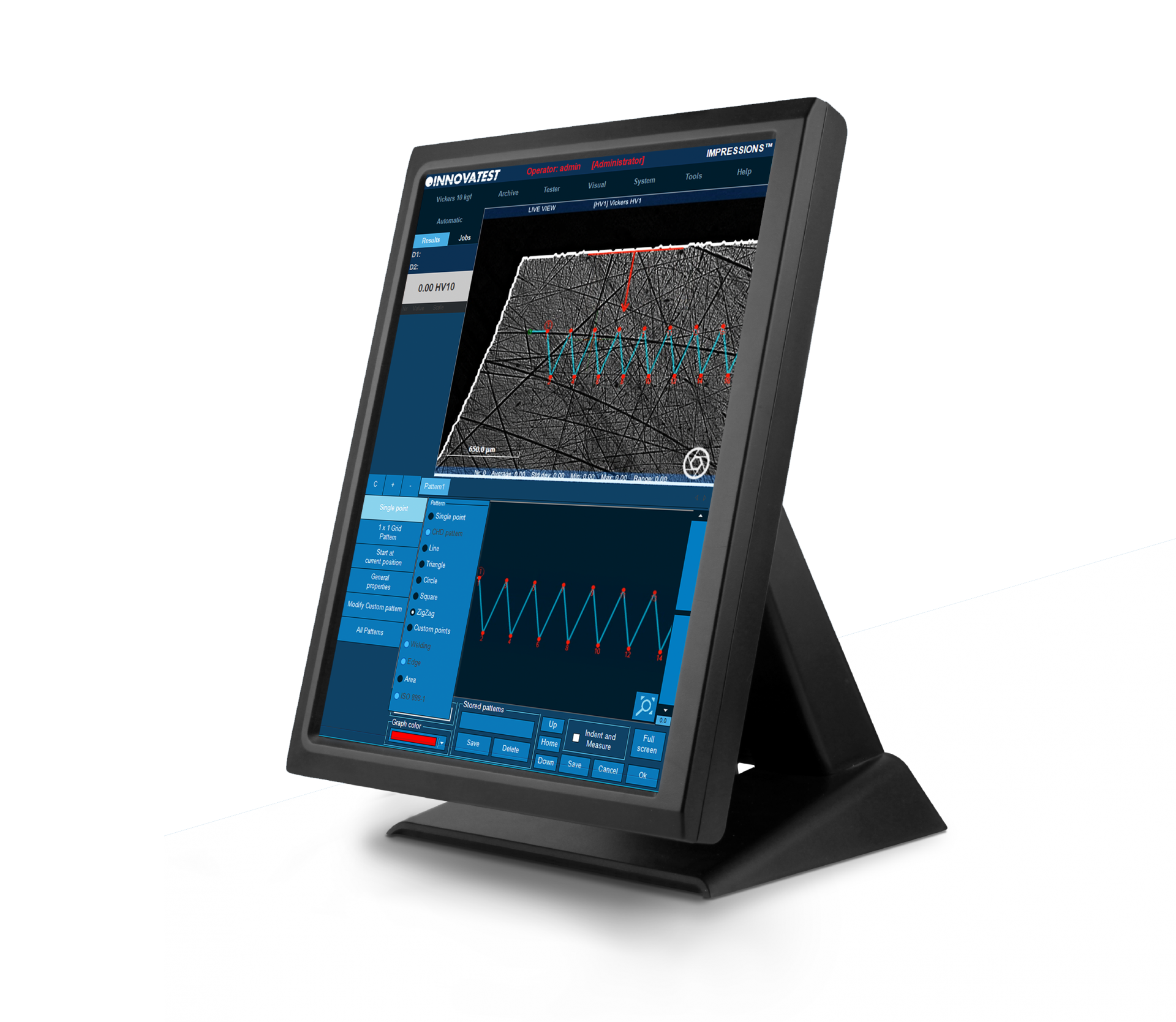 O software IMPRESSIONS™ foi projetado e construído pelos engenheiros da INNOVATEST para simplificar os mais complicados requisitos de testes de dureza de muitas indústrias neste campo. Nossa GUI (Graphical User Interface) contém aplicações preferidas predesenhadas, controle avançado do fluxo de trabalho, relatórios aprimorados e é muito fácil de aprender.